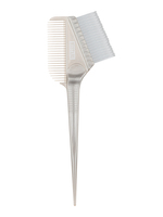 KMO‑11 — кисть для окрашивания "три в одном". В одной руке, без рывков "сменить инструмент", без сложного перевивания пальцами нескольких инструментов — одновременно сама кисть, "хвостик" для разбирания прядей и миниатюрная расческа, как раз такая, как нужно при окрашивании.